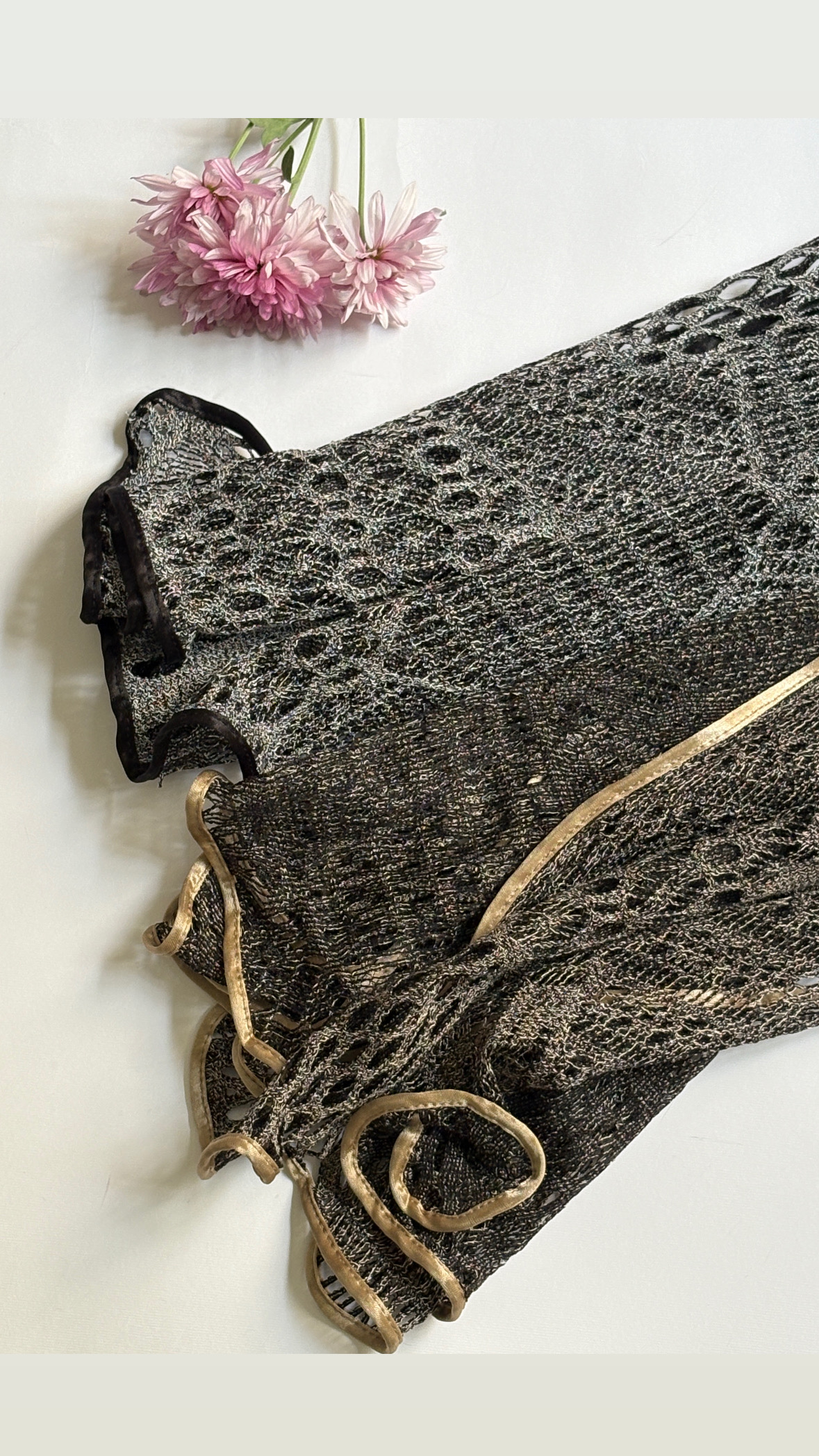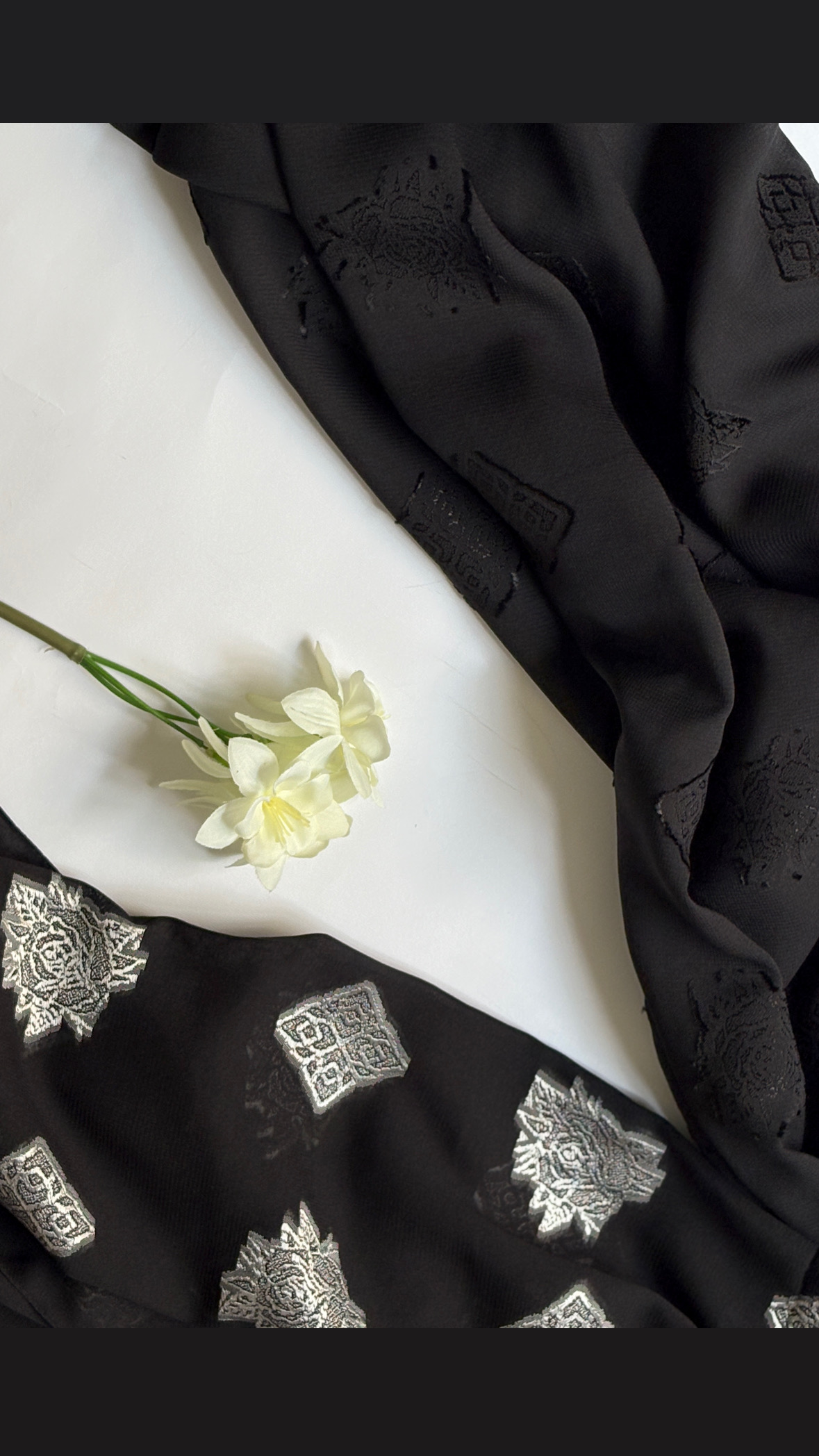 شال ویسکوز مجلسی حاشیه حریر سرمه ای