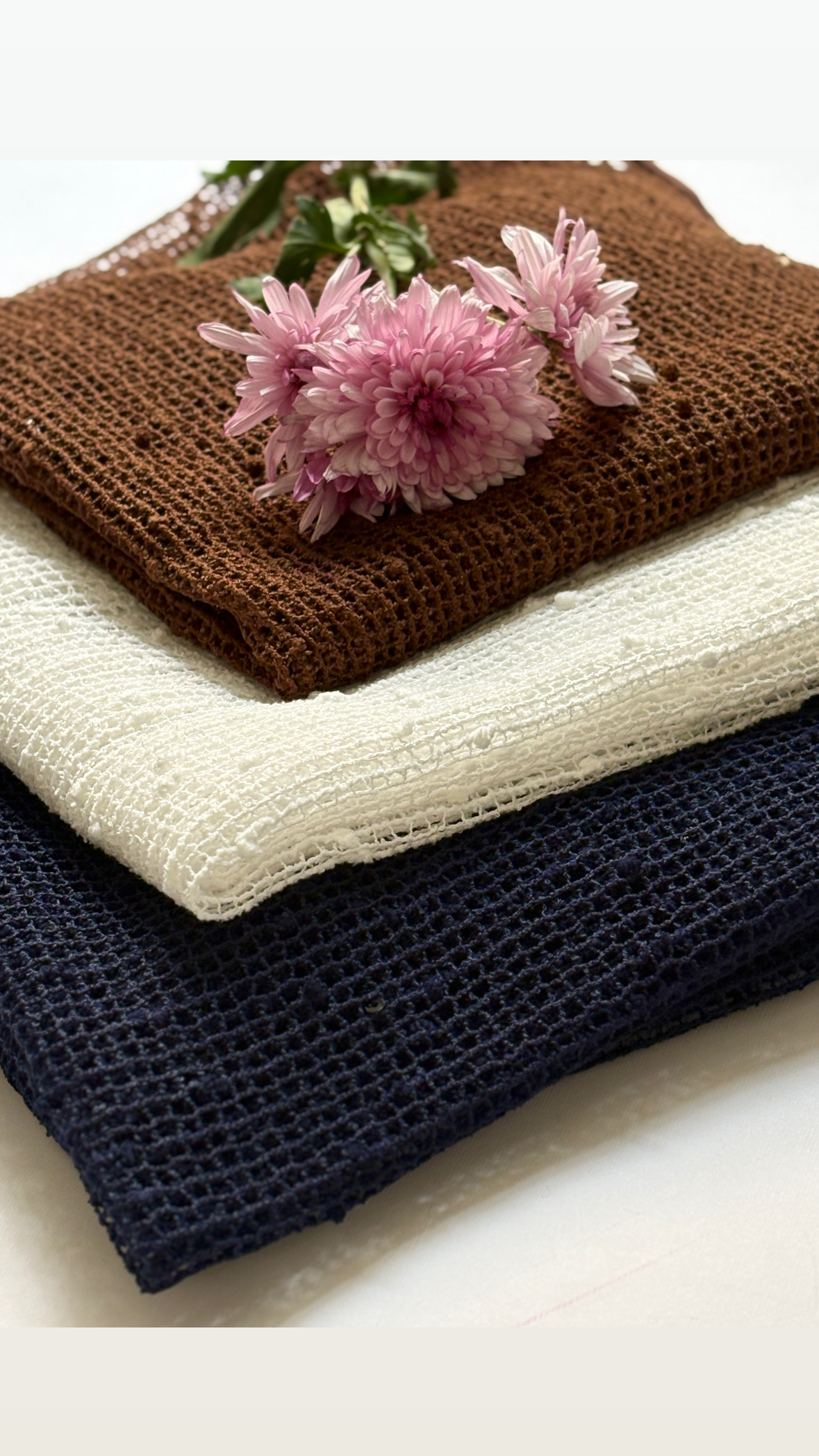 شال کتان حاشیه ریشه سوزنی مارک ال وی