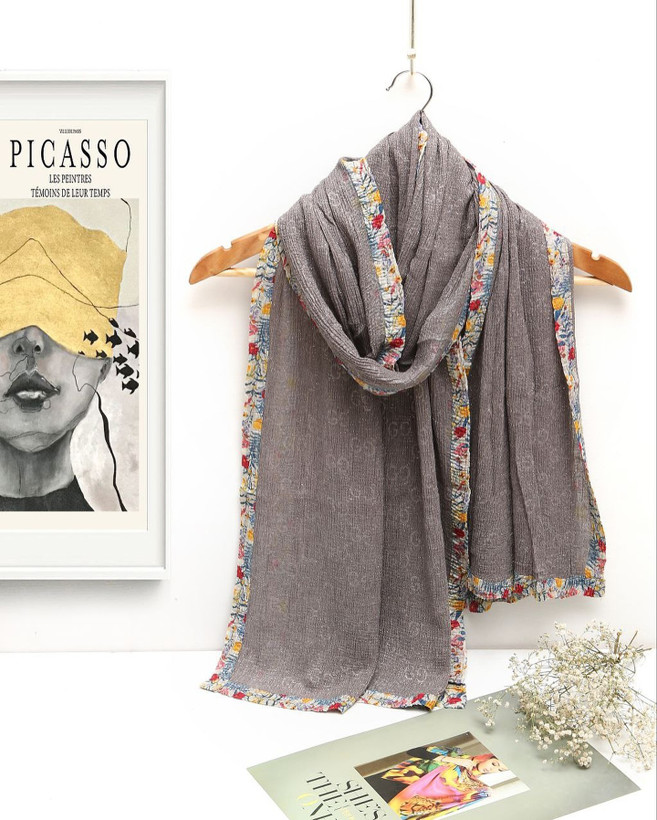 🔥شال برشکالمه دار حاشیه گل وارداتی ۱۰رنگ زیبا 🔥