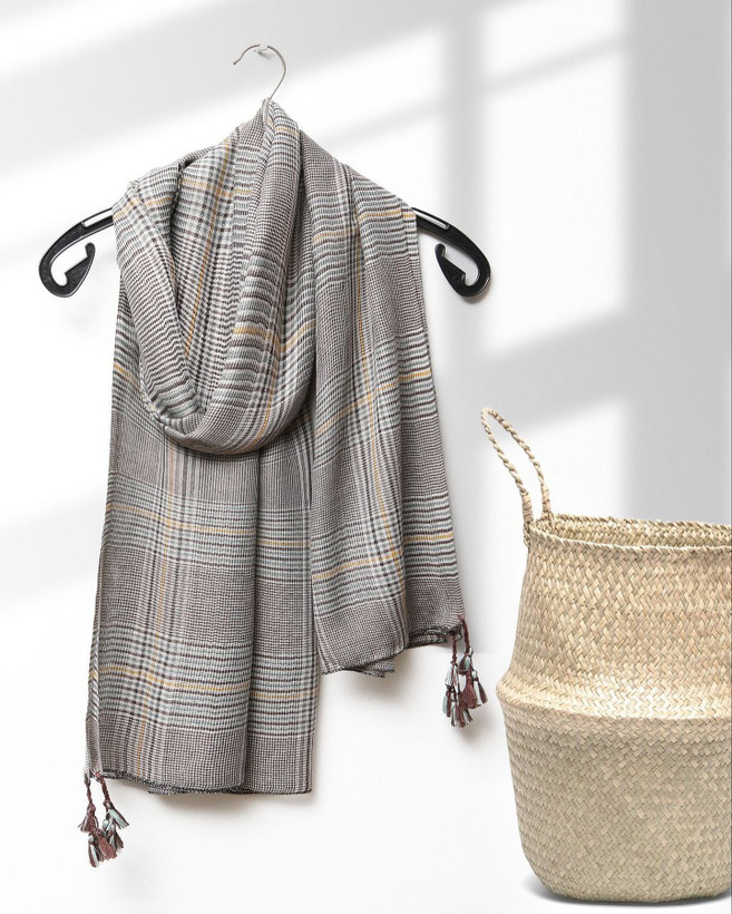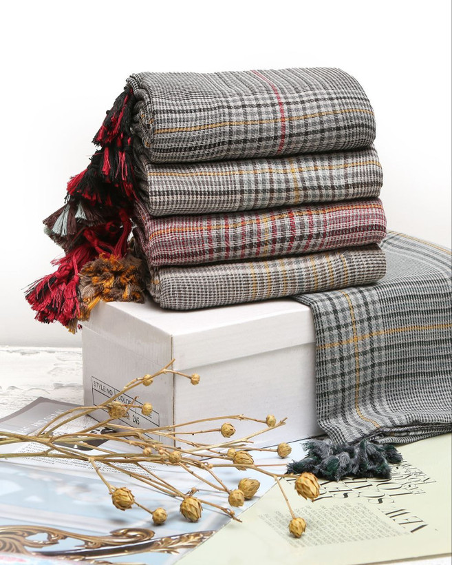 شال نخ پنبه وارداتی طرح دار منگوله دار💥