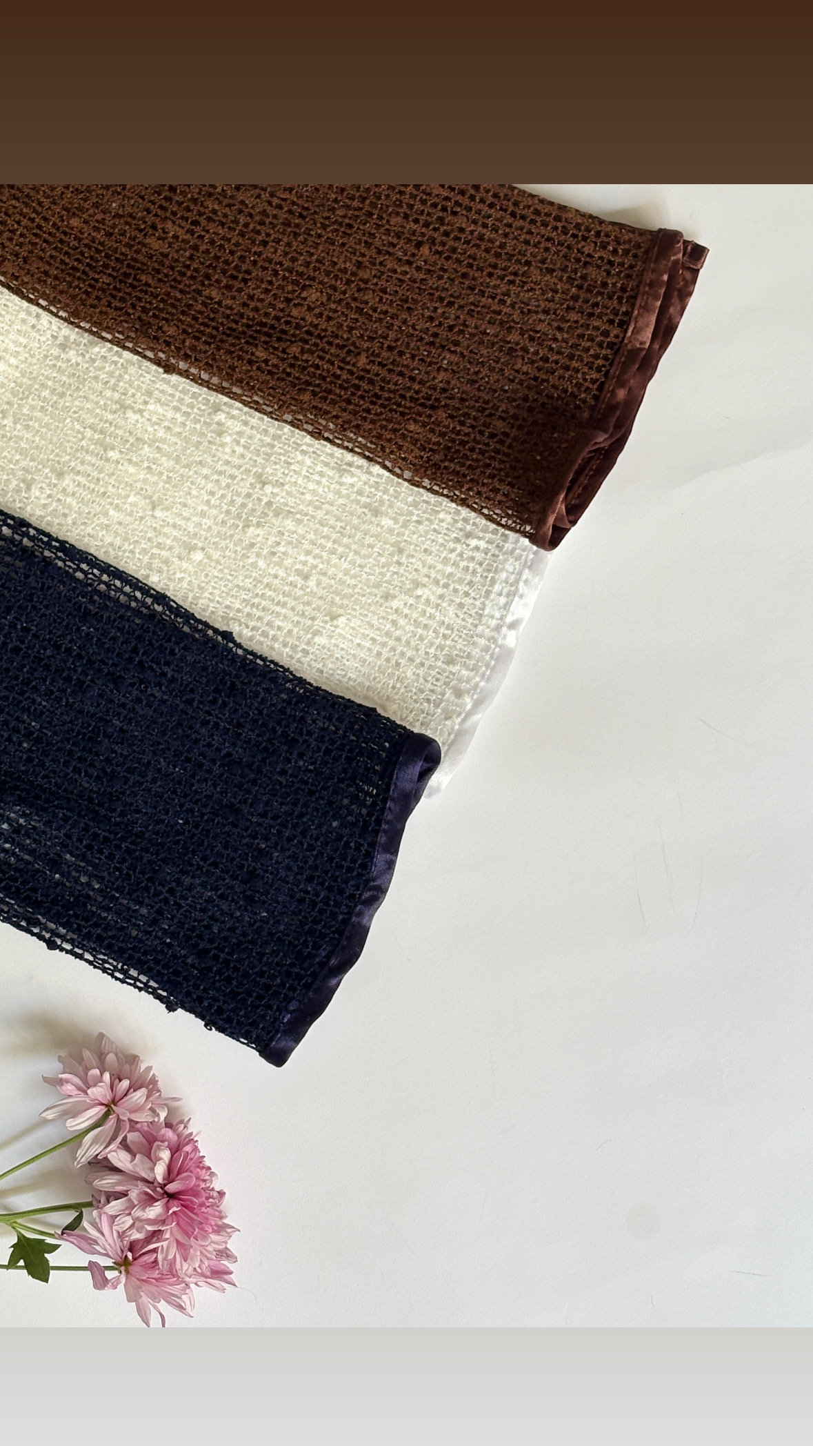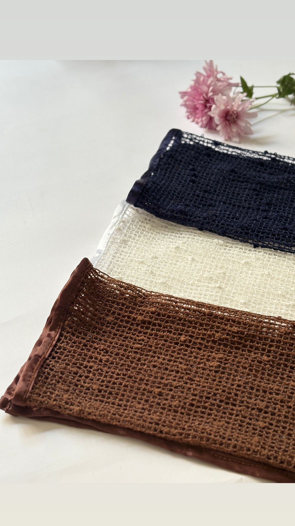 شالهای قلاببافی با رنگهای سفید سرمه ای و قهوه ای انتخابی بسیار هوشمندانه و اصطلاحاً "Timeless" (ماندگار) هستند. این رنگها جزو رنگهای خنثی (Neutral) محسوب میشوند و به دلیل آرامشبخش بودن، برای استایلهای روزمره، نیمهرسمی عالی هستند.