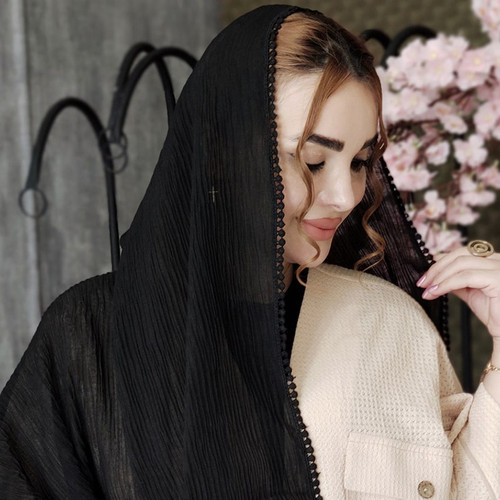 شال پلیسه مشکی حاشیه عدسی