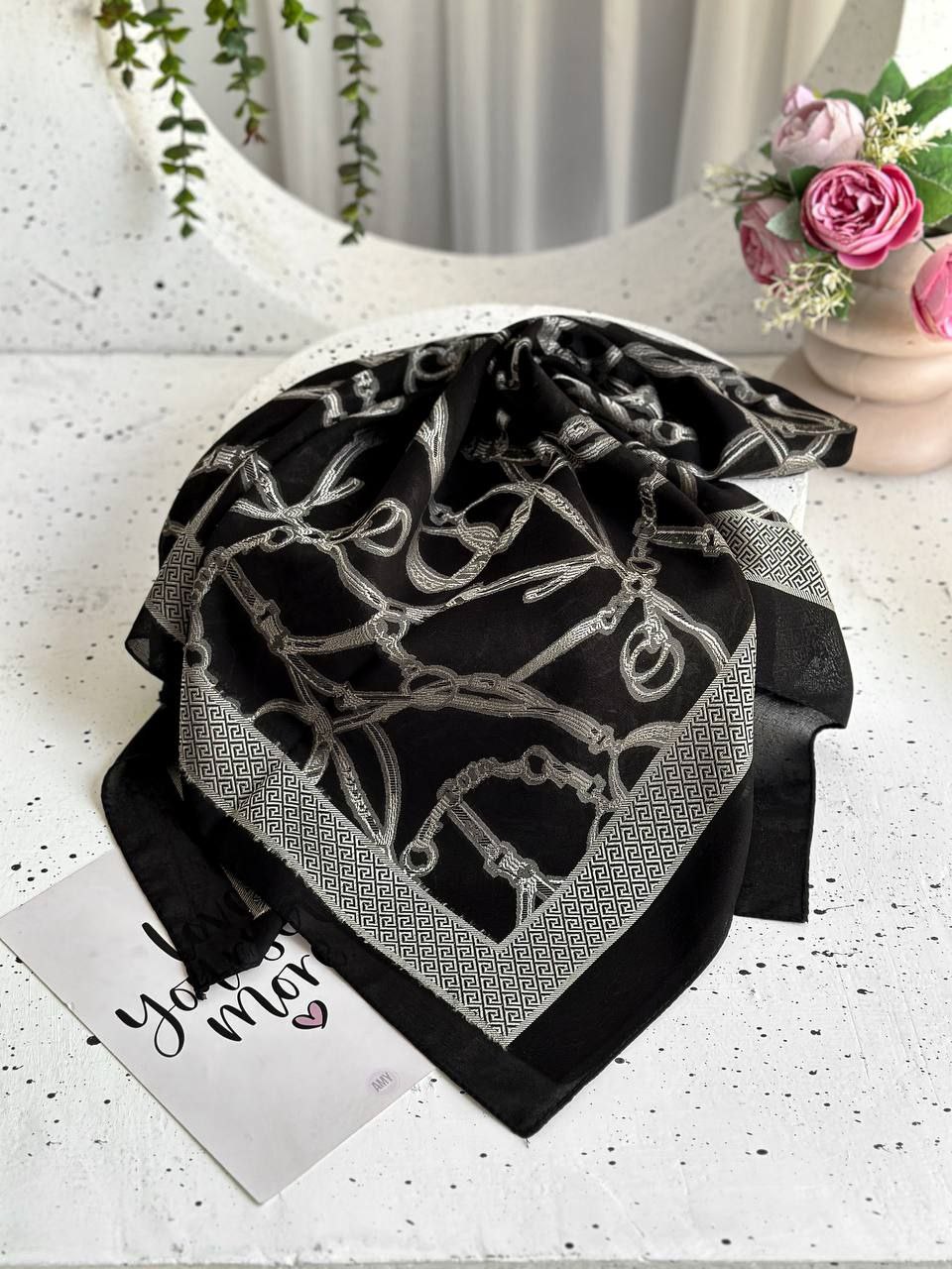 روسری ساتن مشکی کریستال
